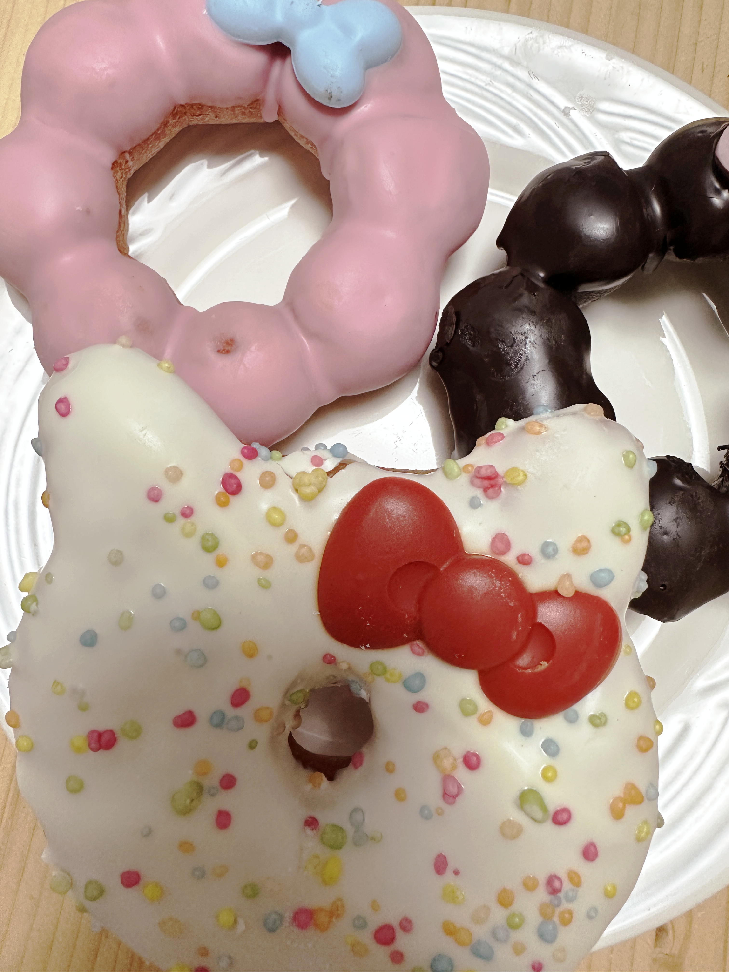 이제 포켓몬 대신 산리오가 유행인가 할 정도로 산리오가 핫해지고 있음 각종 콜라보 상품들은 우와 예뿌다~ 애기들 환장하겠넹 이런 마음으로 구경하고 잇었는데 식료품이랑 콜라보 할 줄은... 해도 그냥 자체제작 굿즈나 주나보다 했는데 냅다 도넛을 산리오 모양으로 만들어버렸다고 해서 심심해서 산리오 주문해봄