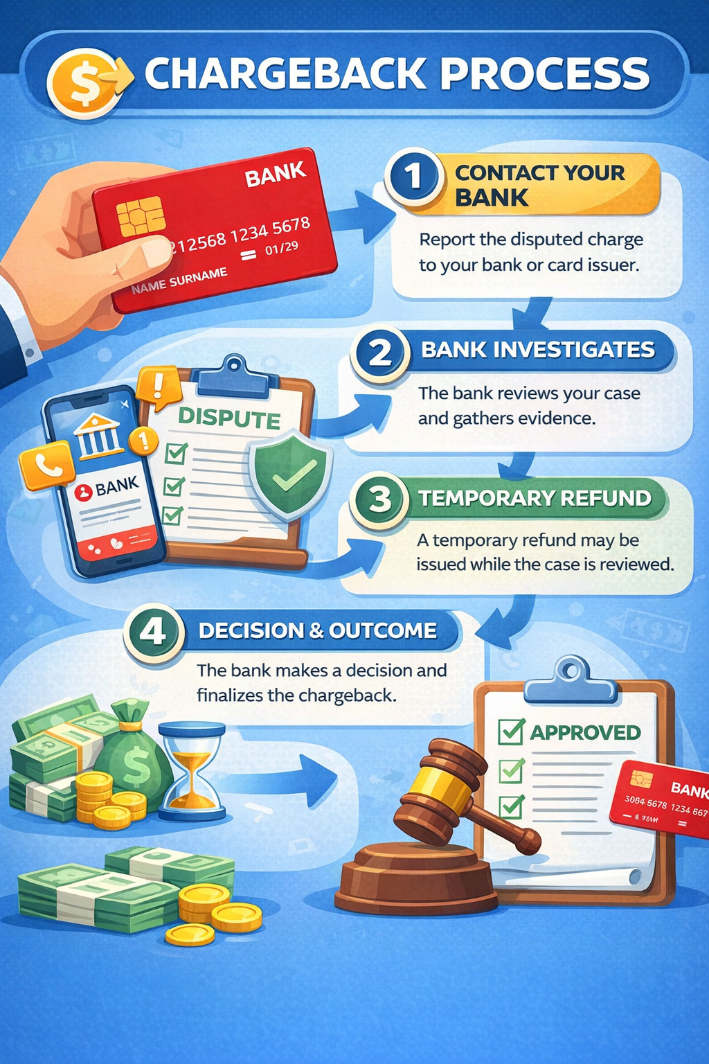If you request a chargeback, your bank or card provider will review the transaction to determine whether the charge was valid. During this process, the card network may temporarily hold or reverse the payment while they investigate the situation. If the charge is found to be improper or misleading, the payment can be returned to the customer. In some cases, the merchant may also face additional fees from the payment processor as a result of the dispute.